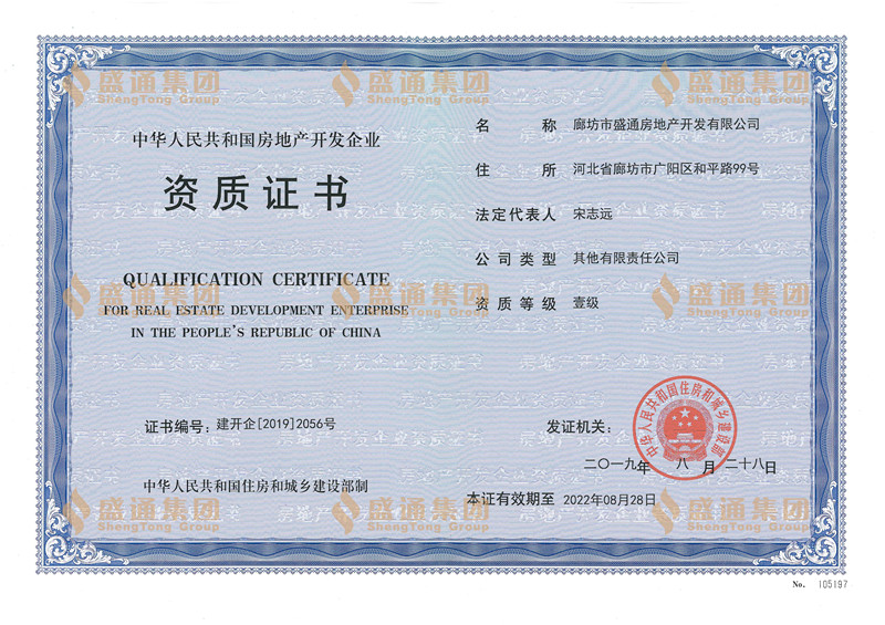 2019年8月28日,廊坊市盛通房地產(chǎn)開發(fā)有限公司(簡稱盛通地產(chǎn))順利通過國家住房和城鄉(xiāng)建設(shè)部嚴格的資質(zhì)審查,成功晉升國家一級資質(zhì)房地產(chǎn)開發(fā)企業(yè)。這是廊坊全市范圍內(nèi),繼新奧、華夏、榮盛等企業(yè)后取得一級資質(zhì)的第九家地產(chǎn)企業(yè)。